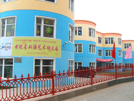 幼儿园内铺有人工草坪,安装了深受儿童喜爱的大型组合游乐设施,配备了国内最先进的多媒体备课系统及大型音箱设备,高薪聘请了优秀的专业教师,采用先进的教学模式向孩子传授知识和技能,同时园里配有外教英语教师,为幼儿创设了良好的语言环境,让孩子从小接触标准的英语。