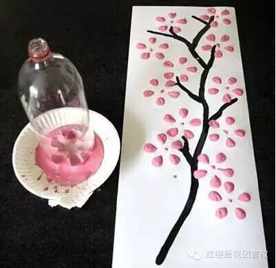 用喝完的大可乐瓶底,来创造一幅冬日盛开的梅花图吧,效果很棒哈!