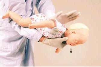 如果咳嗽微弱无力或完全咳不出声,呼吸困难,不能哭,说明梗阻严重,大于1岁的患儿,可采取海姆立克急救法:在幼儿身后,双手环绕其腰部,一手握拳,将拇指侧紧抵幼儿上腹部,另一只手握住握拳的手,用力向后上方挤压,压后放松,重复而有节奏地进行,把异物冲出来。小于1岁的,采取拍背和胸部快速按压结合的办法:将婴儿放在你的膝盖上,脸朝下,头略低于胸,不要压到其喉部,用手掌根部在婴儿肩胛之间用力拍5下;然后将婴儿翻转过来,脸朝上,头低于身体,在胸部中央胸骨下半部,提供最多5次快速往下的按压,每秒钟1次。重复以上拍背和按压动作,操作中注意保护和固定其头和颈部。