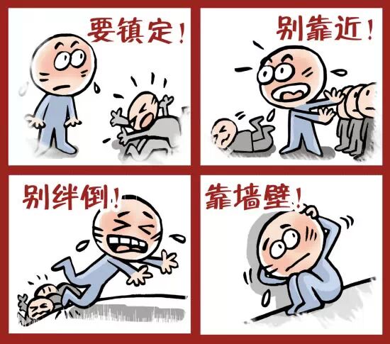如果摔倒了没法站起,爬也要跟着人群前进的方向。如果无法移动,用手护住头部,蜷缩膝盖至胸前。不要俯卧和仰卧。