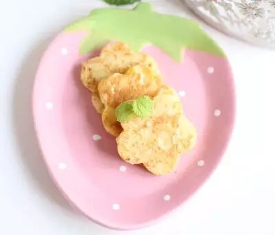 材料:甜玉米粒90g、鸡蛋1个、面粉80g、牛奶50ml、盐1/2g