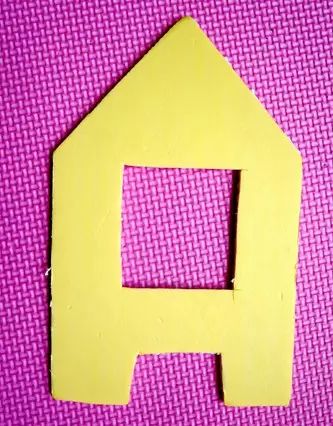 2.把塑料片剪成长方形,大小不大于船身中间镂空处,接着在上面戳两个能穿过橡皮筋的孔。
