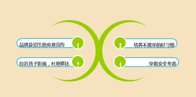 在园服征订的过程中,选择品牌厂家很重要,因为可以要求厂家快递样板,画册,检验报告等资料过来,让家长知道,幼儿园选择的是品牌园服,不是小作坊加工的劣质货,有检验报告证书等资料,是正规企业生产的,安全可信赖的产品家长自然更容易接受,同时,直观的看到样衣,知道面料做工是否符合要求,款式是否大家都比较中意,解除了这些疑虑,家长才会放心的订购。