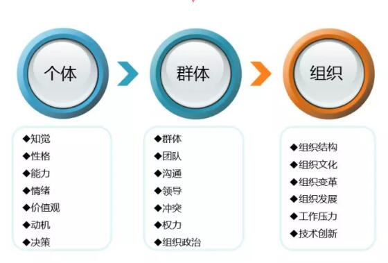 这就是“组织行为学”的定义,从中我们可以找到人员管理的三个层次:个体、群体、组织。在平时管理员工过程中,我们需要从这三方面分析问题原因,也试着利用此寻找解决的方法。