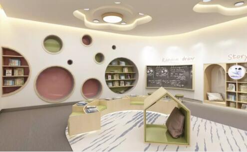 除此之外,幼儿园还可以开辟一个专供家长阅读育儿书籍、休息等待孩子的阅览休闲区,摆放了漂亮的沙发、书柜,营造了非常温馨的环境。