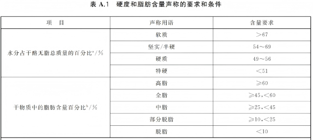 不同硬度、脂肪含量的干酪是这样划分的: